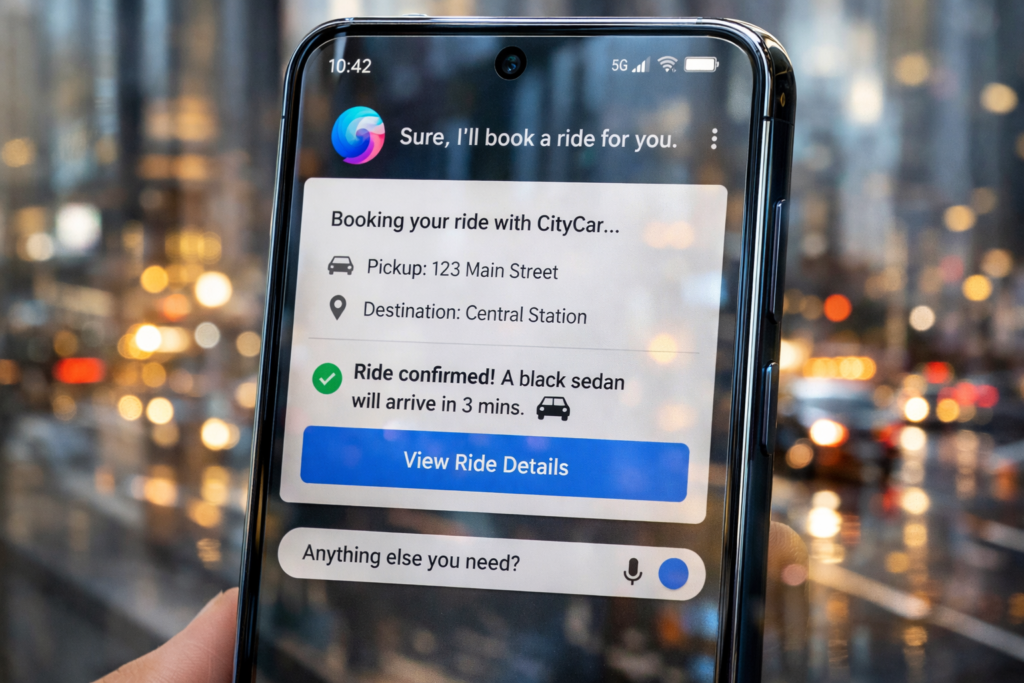 Un utilisateur peut demander à Gemini de réserver un trajet. L assistant lance l application, sélectionne les options nécessaires et valide la commande en arrière plan. Samsung prévoit d étendre cette fonctionnalité à d autres services de mobilité et de livraison.