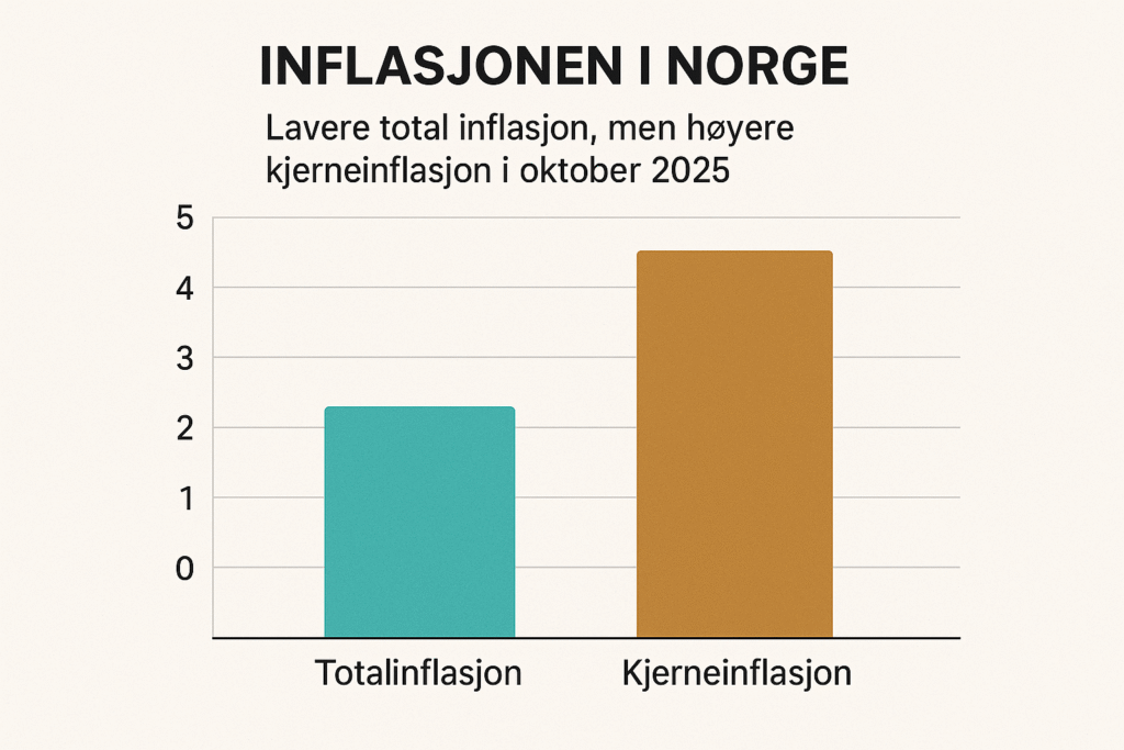 Tall fra Statistisk sentralbyrå viser at inflasjonen i Norge i oktober 2025 steg med 3,3 % sammenlignet med samme måned i fjor.