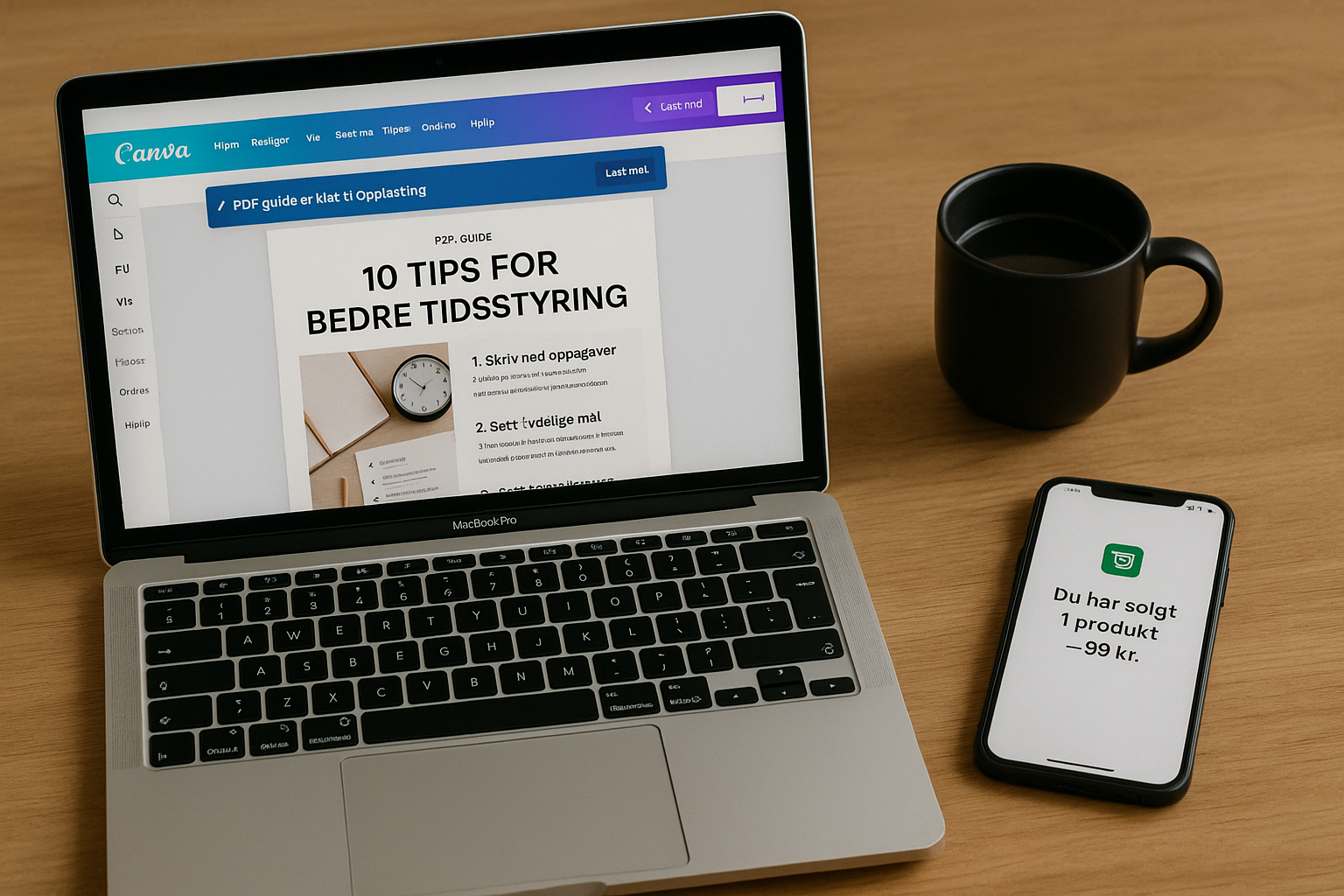🕘 19:00 – Lim teksten inn i Canva og velg mal🕘 20:00 – Lag konto på Gumroad og last opp