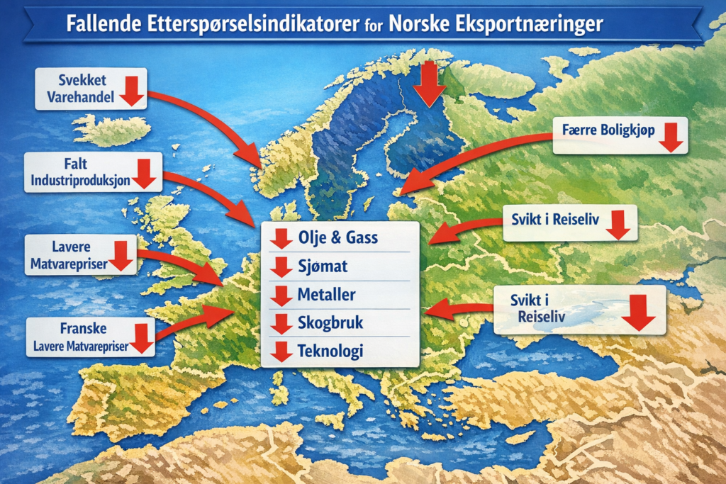 At norsk eksport rammes av svakere etterspørsel i Europa i 2026, er et tydelig varsel om økende konjunkturmotvind. Europa er Norges viktigste marked, og utviklingen der får raske konsekvenser hjemme.