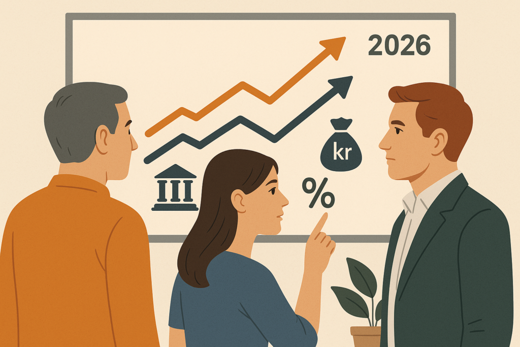Rentenivået ble satt opp kraftig de siste årene for å dempe inflasjonen. Selv om den nå stabiliseres og mange eksperter forventer fall i løpet av 2026, vil renten fortsatt ligge på et vesentlig høyere nivå enn vi så i årene før inflasjonspresset startet. Dette gir lavere avkastning i aksjemarkedet og press på pensjonsporteføljer. For tjenestepensjon og individuell sparing betyr dette at avkastningen kan bli svakere, mens risikoen øker.