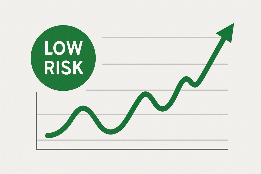 Lav risiko betyr kontrollert risiko per handel og stabil gevinst over tid.