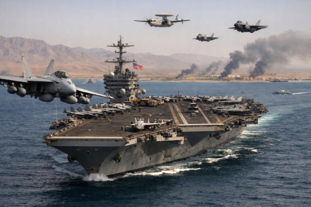 Siden januar har USA sendt titalls krigsfly, tankfly og marinefartøy til regionen. Hangarskipet USS Abraham Lincoln opererer i Arabiahavet, eskortert av flere destroyere. I tillegg er verdens største hangarskip, USS Gerald R. Ford, på vei mot området.